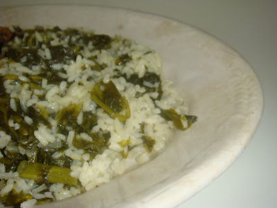 Pois outro dia estive no Santa Luzia e encontrei finalmente estes grelos da Galicia, com um pouco de atraso para os meus testes mas não para matar minha curiosidade. Não frescos, mas congelados. Chegando em casa, a primeira coisa que fiz não foi preparar a iguaria, mas sim repetir a mesma ligação de 15 anos ao Santa Luzia para conferir se alguma coisa mudou de lá pra cá. Alô, por favor, o senhor tem grelos? Um silêncio.......... , nenhuma risada. Ela vai estourar, pensei. Repeti com outro acento. Ah, sim, acho que tem, um minuto. Ufa! Voltou. Olha, tem dele congelado, um quilo R$ 20,80. Ah, tá bom, obrigada! Todo mundo sabe que os funcionários do Santa Luzia são educadíssimos, treinadíssimos, super gentis. Mas grelos foi demais para eles naquela época. Fiz o arroz adaptado da receita da amiga portuguesa Elvira, do Elvira Bistrot, que adaptou do livro da Maria de Lourdes Modesto (Cozinhar com Vegetais) e servi com os agulhas fritos, cuja receita e a promessa do arroz estão aqui. Ficou muito bom, imagino que melhor se os brotos fossem frescos. Mas combinou muito.