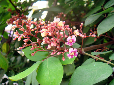 Na volta, andando pela Alameda Nothmann, encontrei este pé de carambola com flores e frutos.